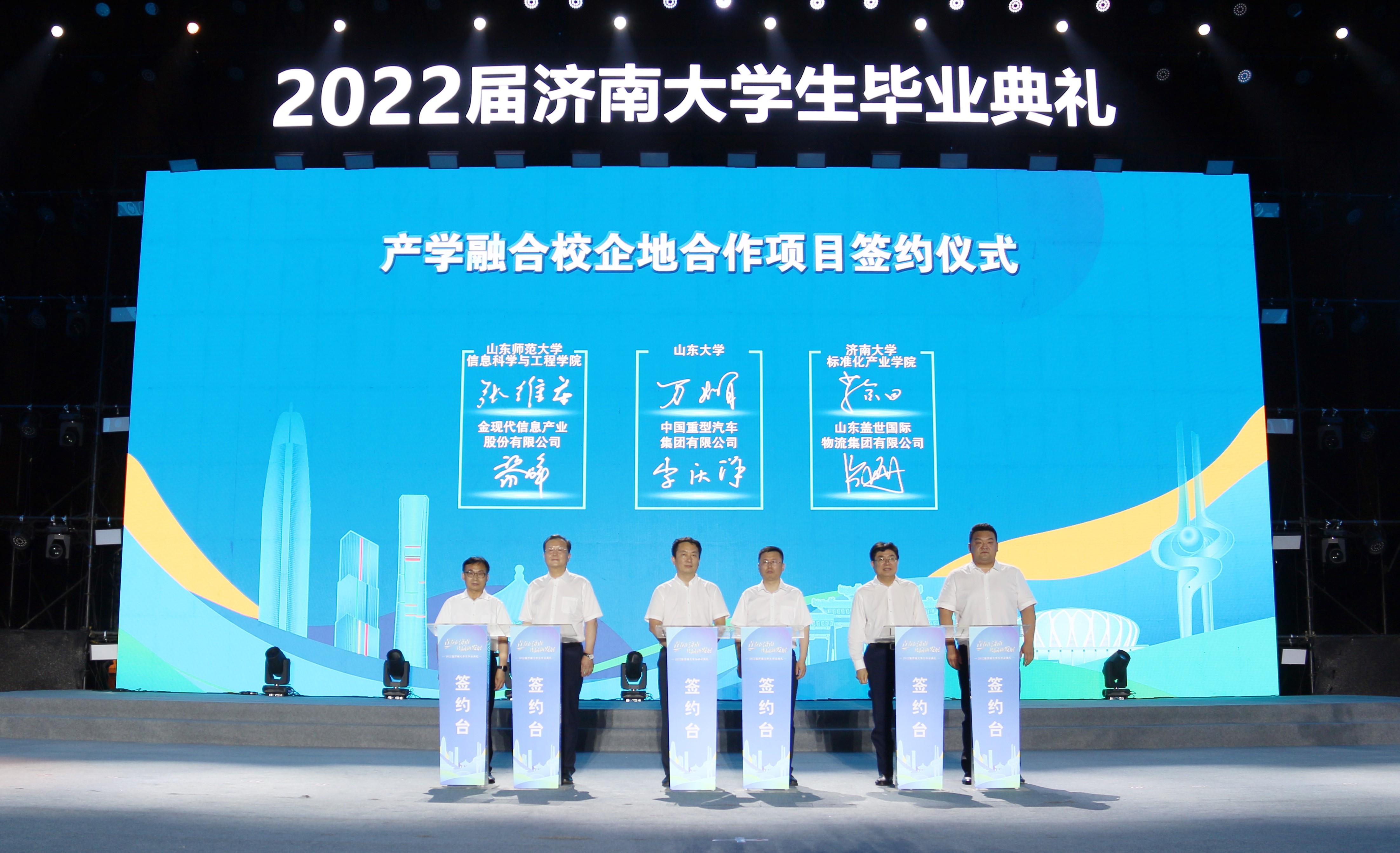 标准化产业桃花视频 院长葛金田应邀出席毕业典礼,并在“黄河流域高质量发展校企地青年创新平台项目签约”环节,代表桃花视频 与山东盖世国际物流集团进行产学融合校企地合作项目签约。