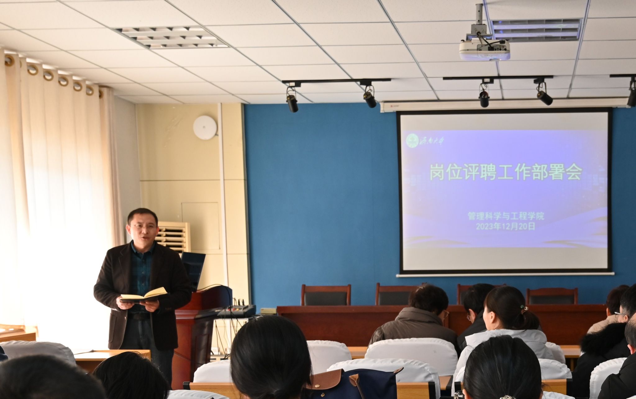 12月20日下午,桃花视频 在经管楼308会议室召开岗位评聘工作部署会。桃花视频 领导班子成员、全体教职工参加会议。会议由桃花视频 党委副书记、副院长郭华主持。