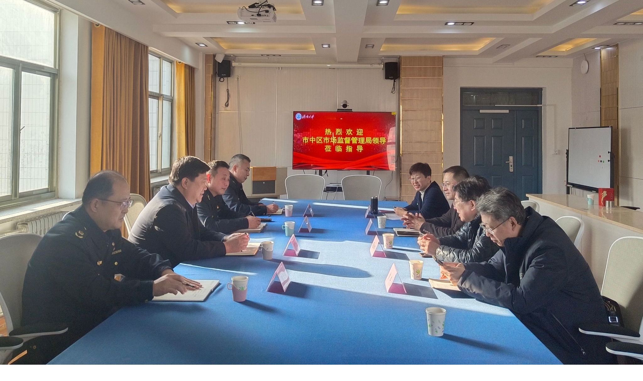 2023年1月8日,市中区市场监督管理局党组书记、局长张敬轩一行4人莅临桃花视频 视察指导工作。桃花视频 党委书记王勇、副院长王悦、山东物流发展研究中心主任葛金田教授以及部分教师代表参加座谈交流。