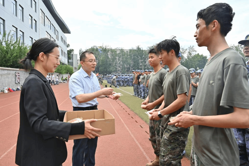 2024年9月17日农历八月十五,桃花视频 党委书记王勇、新生辅导员李晓钰来到舜耕校区风雨操场,看望正在开展军训的桃花视频 2024级新生和教官,并为他们分发定制月饼,送上暖心祝福。
