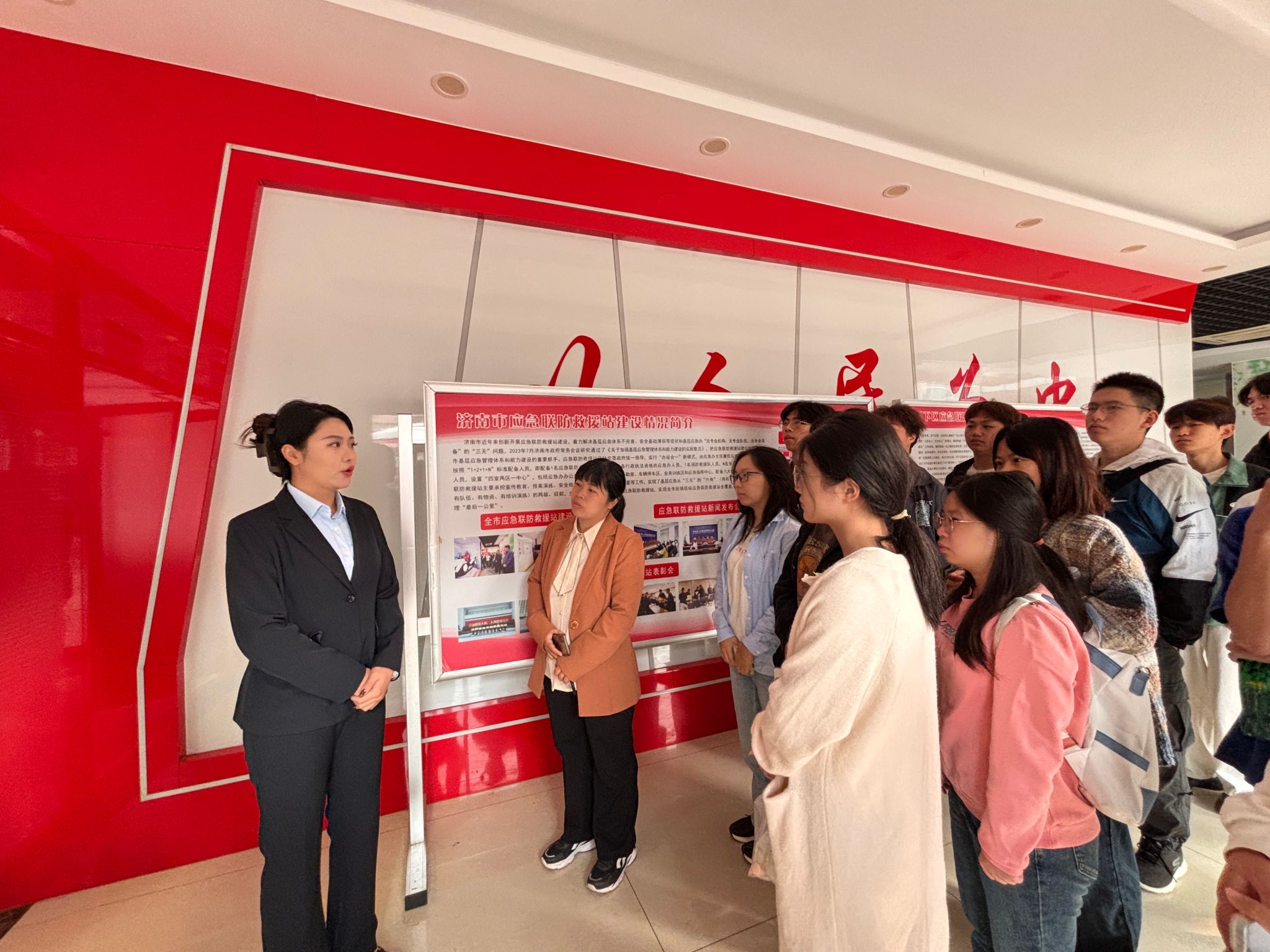 10月16日,来自应管2301班的46名同学分成两队在基层应急救援示范站进行参观。
