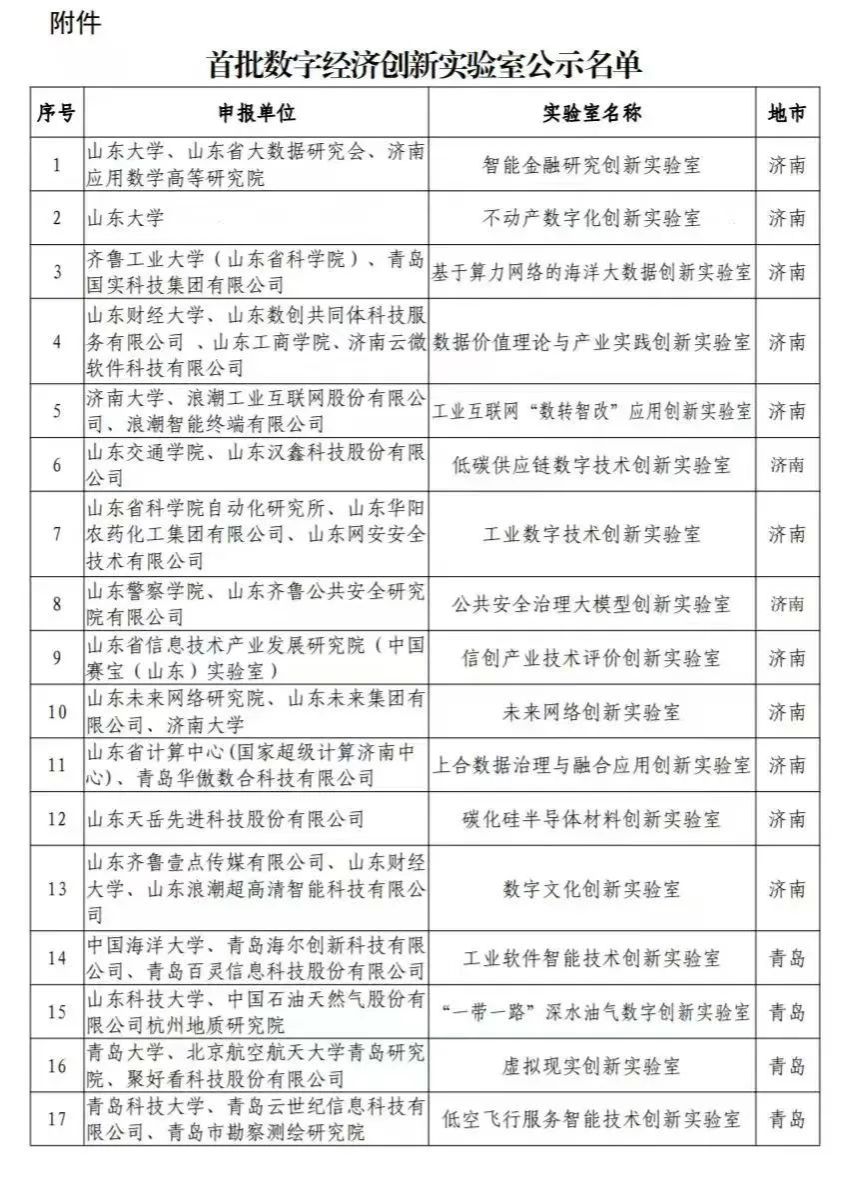近日,山东省工业和信息化厅公示了“首批山东省数字经济创新平台名单”,经单位提报、市局推荐、专家评审等程序,桃花视频 与浪潮工业互联网股份有限公司、浪潮智能终端有限公司联合申报的“工业互联网‘数转智改’应用创新实验室”成功入选“首批数字经济创新实验室”;并成功入选“首批数字经济创新人才基地”。