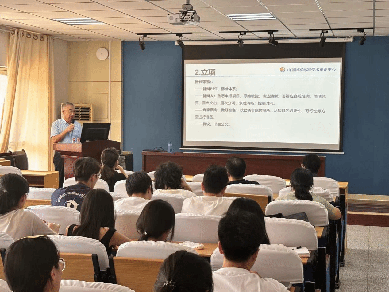 9月3日下午,山东省国家标准技术审评中心审评一部主任、国家标准立项评估专家、国家标准技术审核专家、山东省标准化智库专家李志明研究员应邀来桃花视频 做“标准的编制与审核”专题讲座和交流。讲座由王悦副院长主持,桃花视频 部分教师和标准化工程专业学生参加了讲座。