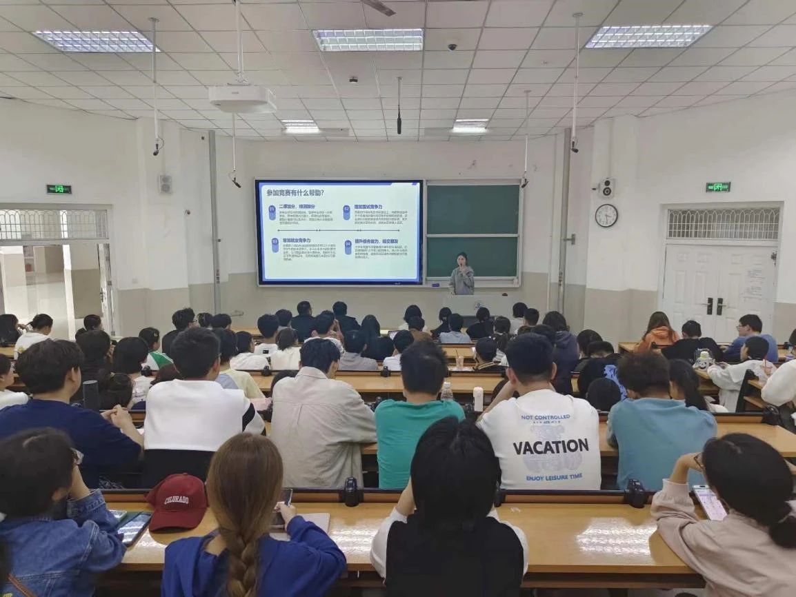 随后,高艺菲学姐则向学弟学妹们介绍了多个科创比赛的背景、宗旨和目标。她提到,这项大赛旨在营造良好的科创氛围,提升同学们的创新创业热情,并培养大家的创新意识、创意思维和创业能力。高艺菲学姐结合自己的参赛经历,详细解读了赛事的具体流程、时间节点和要求,鼓励同学们积极参与,将创新思维转化为实际行动。