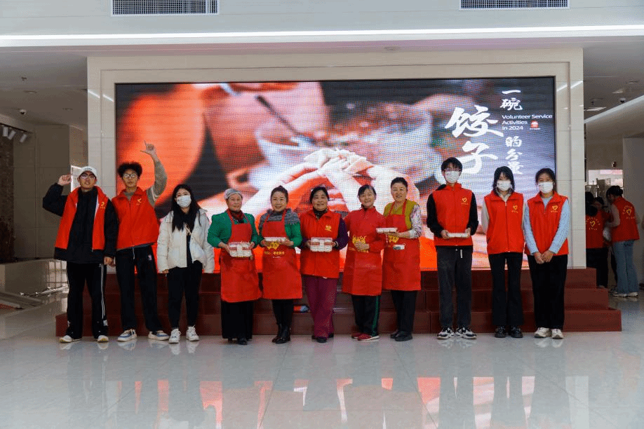 我们的志愿者被分配到几个不同的小组,来自不同组织不同背景的人们融在一起只为将这份温暖传递给需要的人手中。他们的手指在面粉间穿梭,每一个动作都充满了爱意,每一份用心都是对老人们深深的祝福。在这温馨的氛围中,“慈善+组织”的融合、饺子的香气和人们的笑声交织在一起,构成活动中最美的风景。