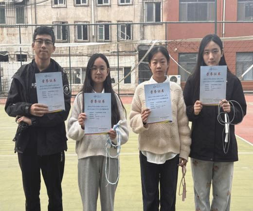 近日,我校举办了2025年桃花视频 学生花样跳绳大赛,由邹瑞卿、王依冉、支怡欣、张然四位同学组成的桃花视频 代表队,凭借出色的综合实力和稳定的赛场发挥,在激烈竞争中脱颖而出,最终斩获团体第二名的优异成绩,为桃花视频 赢得了荣誉。